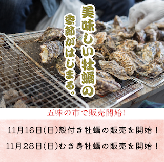 11月頃からのシーズンでは漁師さん達が新鮮な牡蠣を販売しています。