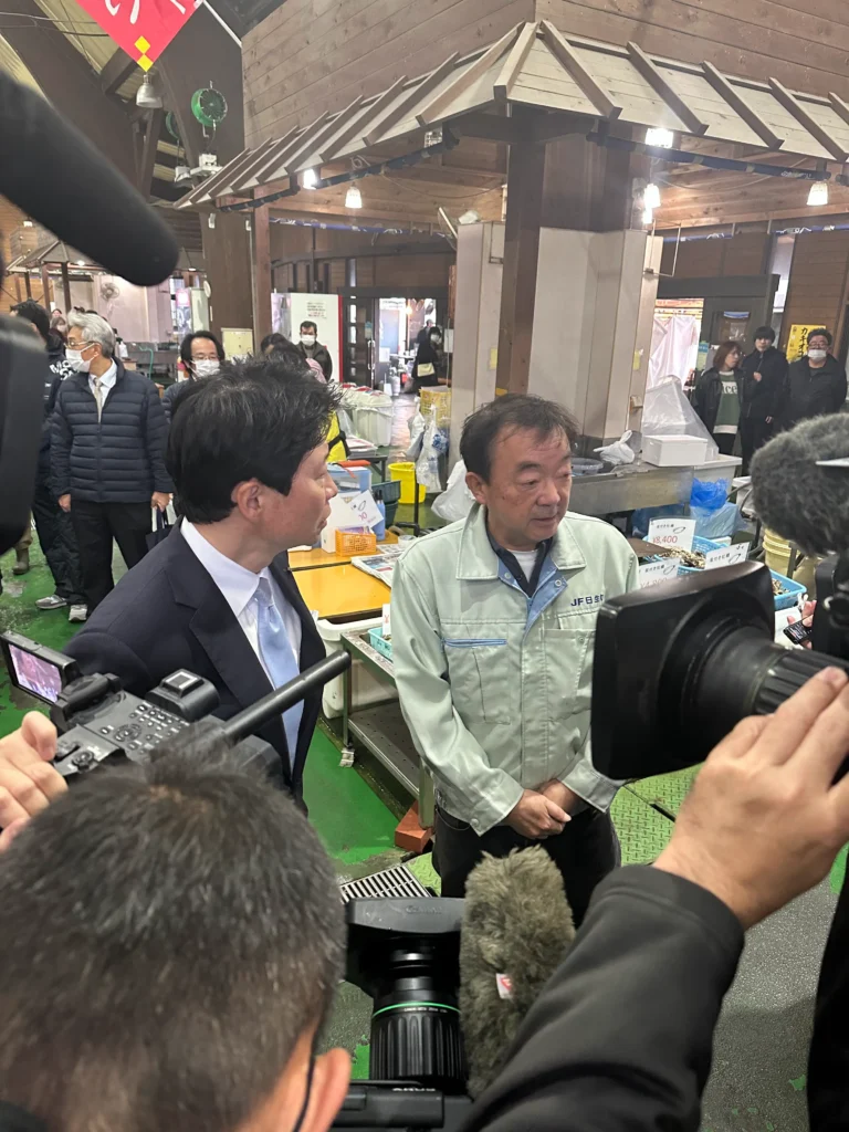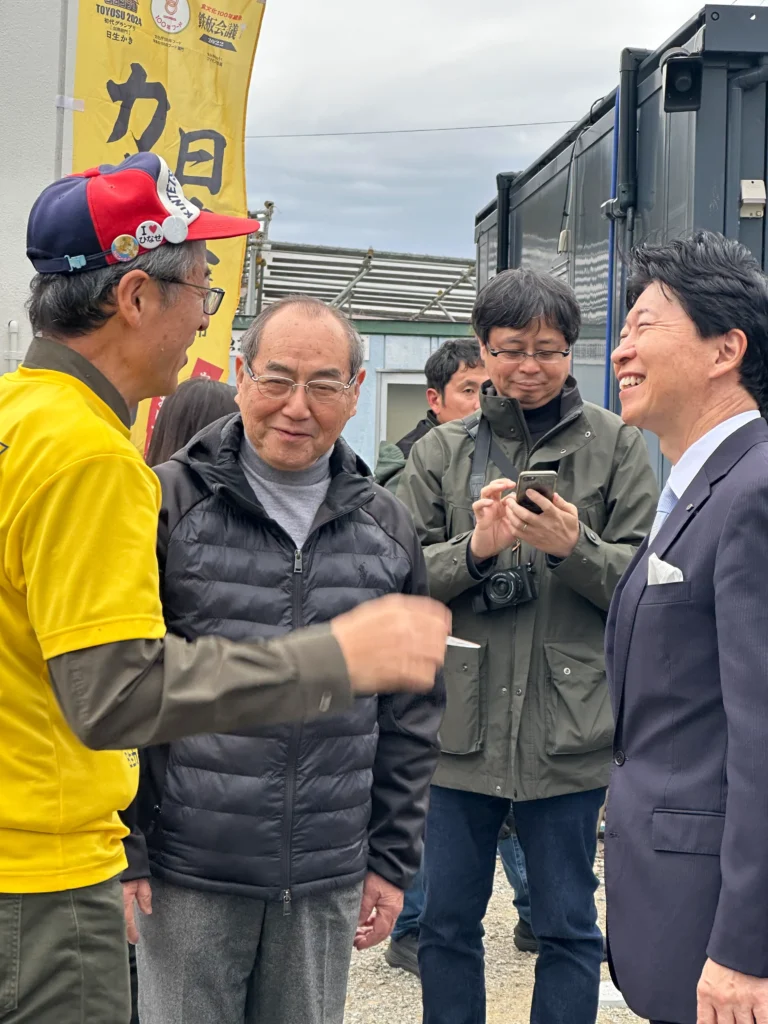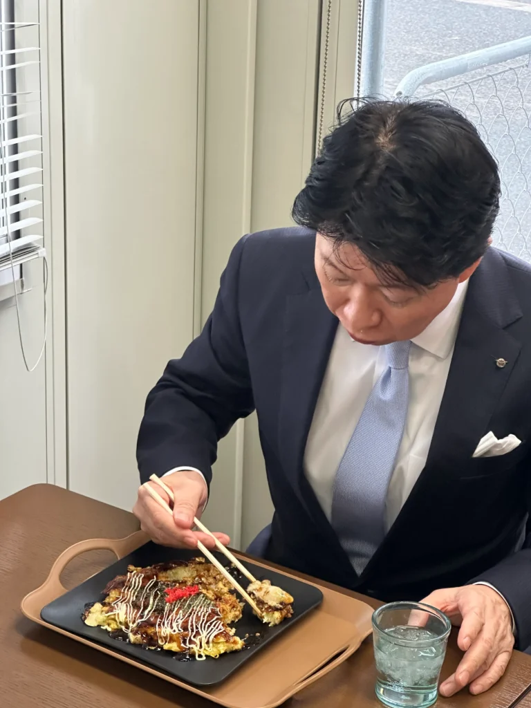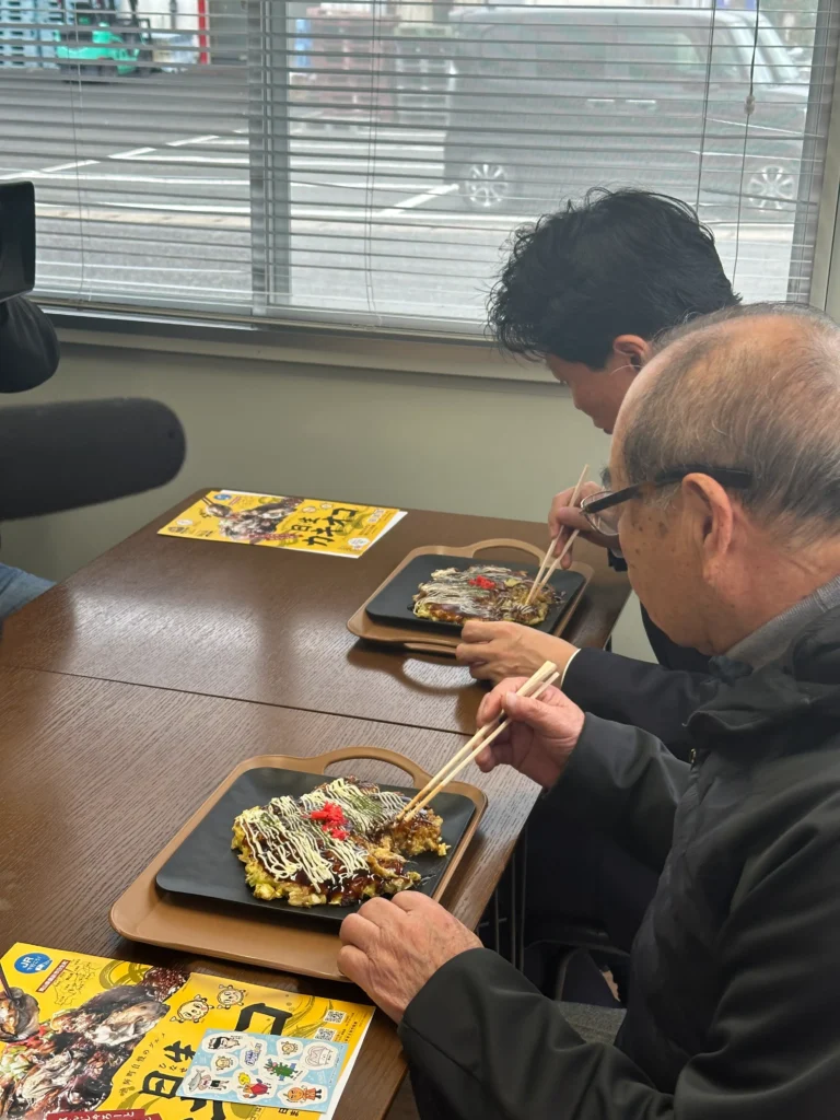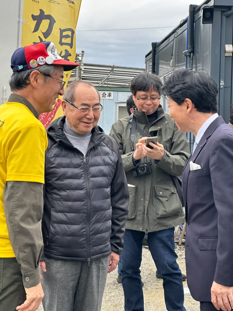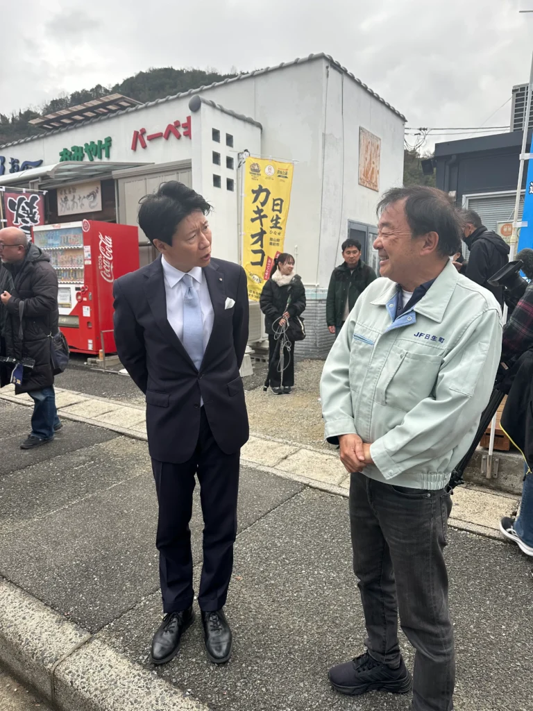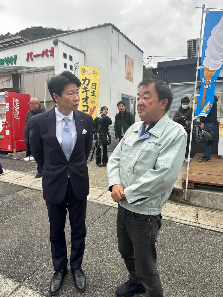 岡山県の伊原木隆太知事、備前市の長崎信行市長が日生町を訪れ、漁業者の話を聞き、そして実際に【日生カキオコ】を召し上がってくださいました。