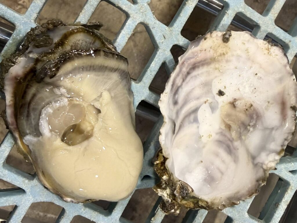今年は海水温の影響などで、正直に言うとカキにとってはすごく厳しい1年でした。 「みんなのカキ、大丈夫かな……」と心配していましたが、引き上げてみればビックリ!