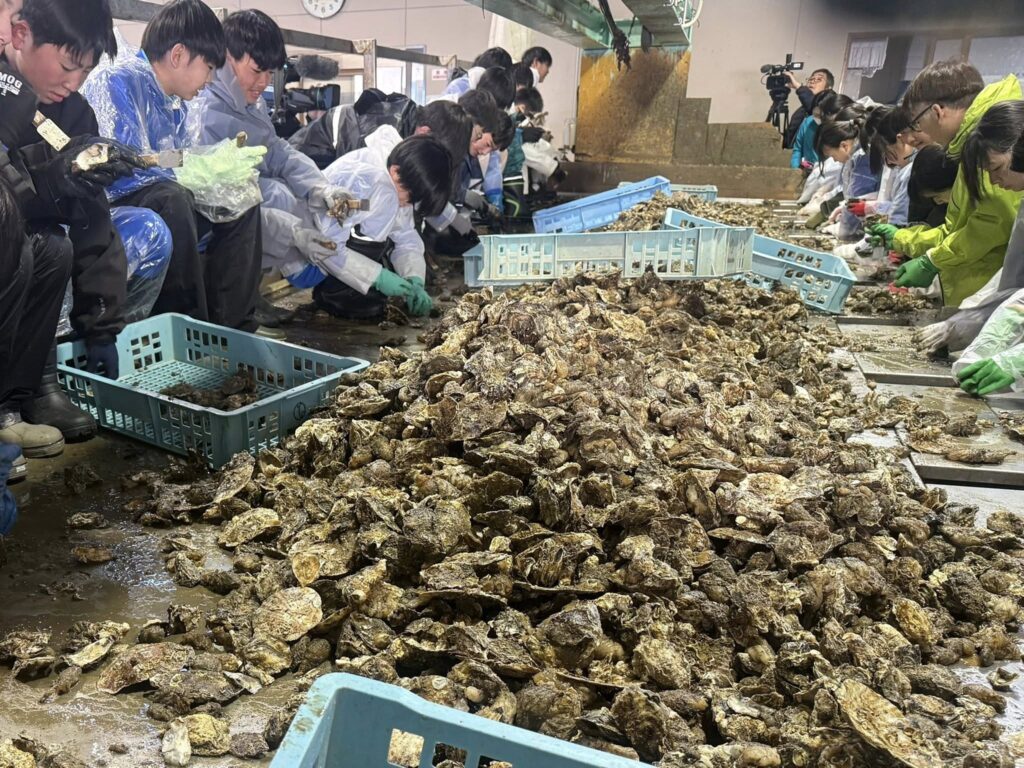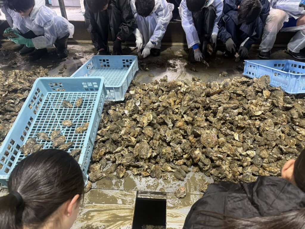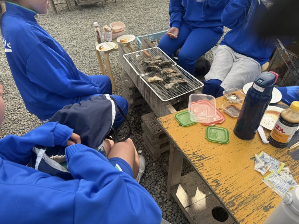 生徒たちは、冷たい水でカキを洗ったり、選別したりと大忙し。 最後は自分たちで焼いて、ハフハフ言いながら試食タイム! 「苦労した分、めちゃくちゃ旨い!」という声を聞けて、私たちもホッとひと安心です。